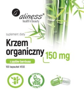 Krzem organiczny 150 mg z pędów bambusa od Aliness to doskonałe wsparcie dla zdrowia tkanki łącznej, zapewniające elastyczność i wytrzymałość skóry, kości oraz stawów, dzięki naturalnemu źródłu krzemionki z pędów bambusa.