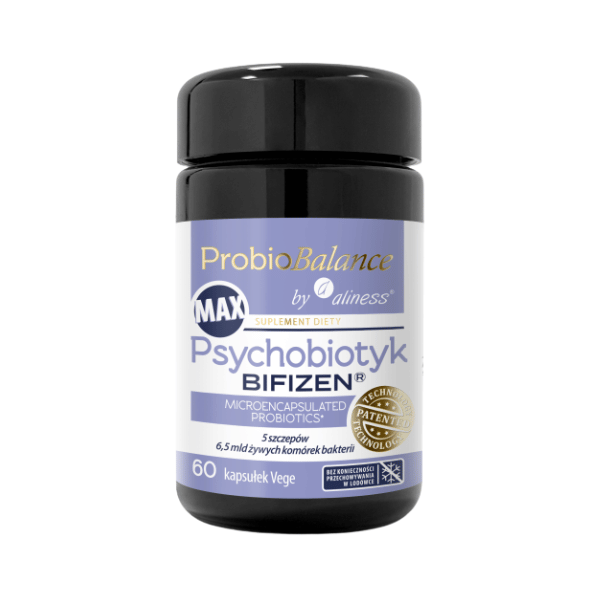 ProbioBALANCE by Aliness® to innowacyjny psychobiotyk, który łączy w sobie potężne działanie probiotyków z prebiotykami, wspierając zarówno zdrowie psychiczne, jak i prawidłowe funkcjonowanie układu pokarmowego. Dzięki starannie dobranym składnikom, takim jak Polisacharyd Fibregum™ Bio LAW i ekstrakt z Babki Lancetowatej, ProbioBALANCE dostarcza aż 6,5 miliarda bakterii probiotycznych w każdej kapsułce. Suplement ten jest idealnym rozwiązaniem dla osób, które pragną naturalnie poprawić swoją równowagę mikroflory jelitowej i wspierać zdrowie psychiczne.