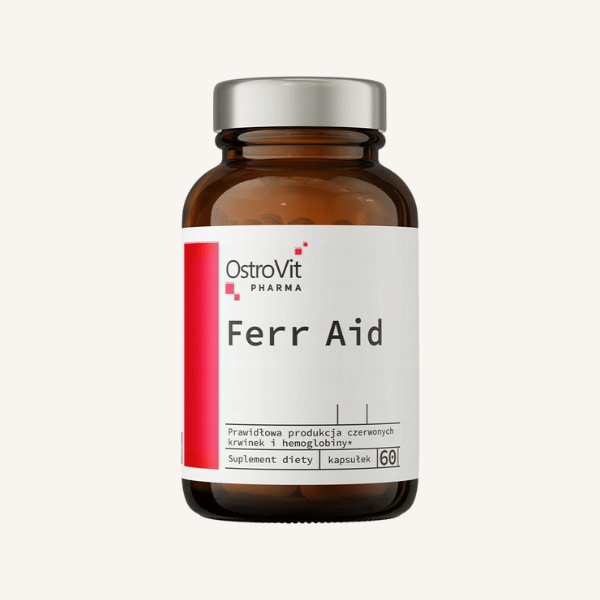 OstroVit Pharma Ferr Aid to wyjątkowy suplement diety, który dostarcza niezbędnych składników odżywczych, takich jak żelazo, witamina B6, witamina B12, witamina C oraz kwas foliowy. Dzięki starannie dobranym składnikom, Ferr Aid wspiera codzienne funkcjonowanie organizmu, pomagając w utrzymaniu energii, zdrowia krwi oraz prawidłowego metabolizmu.